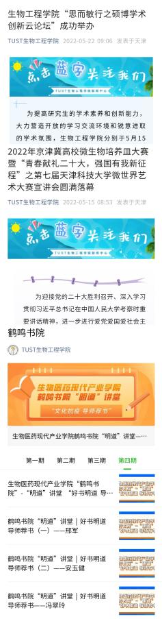 也组织开展“鹤鸣书院荐书及读后感分享活动”、“人生无极限,创新向未来——创新讲堂”、“第八届中国国际“互联网+”创新创业大赛培训会及院赛”、“渤海风崇师论道之导师云开讲主题讲座”、“思而敏行之硕博学术创新云论坛”、“第七届微世界艺术大赛”等活动,引领青年一代以书为师亦为友,以学为尚亦为荣,培养学生多元能力,引领学子全面发展。