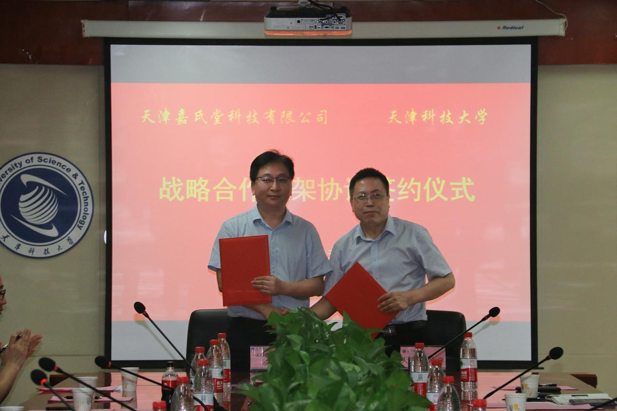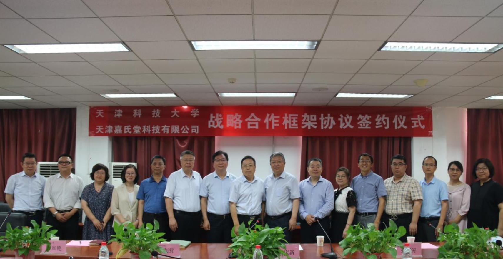 7月1日,我校与天津嘉氏堂科技有限公司在天津科技大学滨海校区举行了战略合作框架协议签约仪式。天津嘉氏堂科技有限公司董事长丁利营、天津中医药研究院附属医院党委书记吴宝新、我校党委副书记、校长路福平出席签约仪式并致辞。科技处副处长邹志强主持会议。天津嘉氏堂科技有限公司总经理李红艳、行政总监郑羽、事业部副总监林竹、天津中医药研究院附属医院皮肤科主任张理涛、药学部主任梁颖、制剂室主任王磊、南开大学教授白钢、天津医科大学教授胡立志、天津市药品监督管理局专家张鹏,以及天津科技大学研究生院常务副院长王敏、小九直播足球