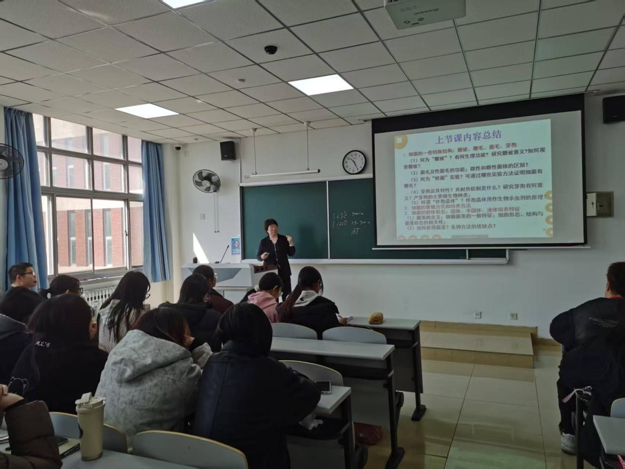 本次观摩活动共安排了2场次观摩课程,上午10:20-12:00,在5-416教室,李玉老师带来了国家级一流课程《微生物学》课程小班授课的精彩讲解。李玉老师凭借扎实的专业知识和丰富的教学经验,巧妙地将理论知识与实际案例相结合,运用生动形象的讲解方式,引导学生积极思考、主动参与。课堂上,学生们全神贯注,充分发挥小班授课的优势,与授课老师互动交流,气氛热烈而活跃。