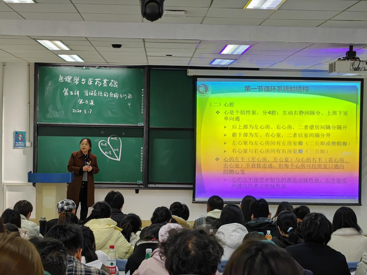 下午15:25-17:05,9-13阶梯教室则迎来了滕玉鸥老师的《生理学与医药基础》课程。滕玉鸥老师采用多样化的教学手段,如多媒体展示、随堂测试等,充分调动了学生的学习积极性。课程内容深入浅出,既注重基础知识的传授,又强调学科前沿的科技创新,为学生呈现了一场精彩的知识盛宴。