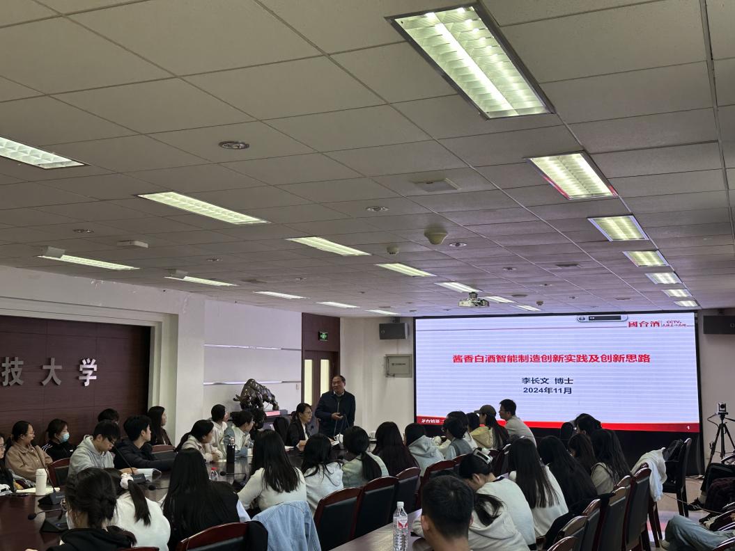 在会上,同学们积极互动,就国台酒的生产工艺、创新的意义和必要性、自己研究方向与酒企的契合程度等多方面进行了提问,李长文都详细进行了解答,让同学们对国台酒业的智能化酿造有了深刻的认识。