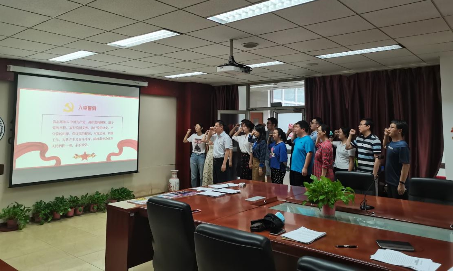 党委书记黄学锋同志带领到场党员,右手握拳,面向鲜红的党旗,重温入党誓词,回顾入党初心,现场气氛庄严热烈。