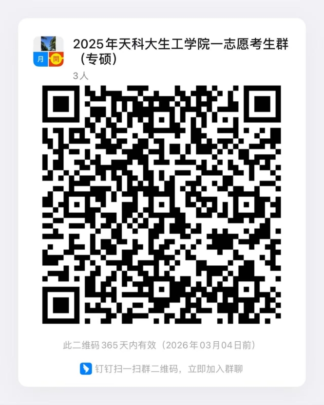 钉钉群加入办法:手机或电脑下载钉钉软件,注册账号并登录后,搜索群号109925010206,或钉钉扫描下面二维码申请进群,申请请备注:考生编号+姓名。进群后请修改昵称为:专业名称+姓名