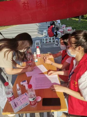 安排志愿者们在新生核酸检测点位进行轮班值守,指导下载软件、录入信息、分发试管,重复成百上千次的动作,为新生们入校第一检提供便利。