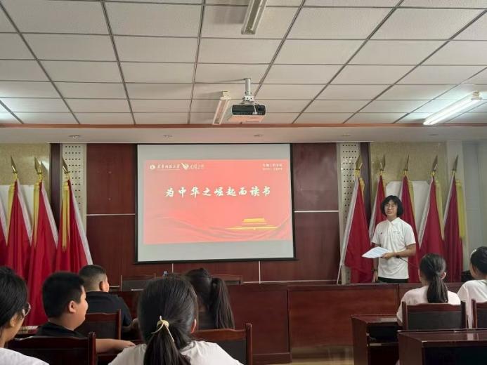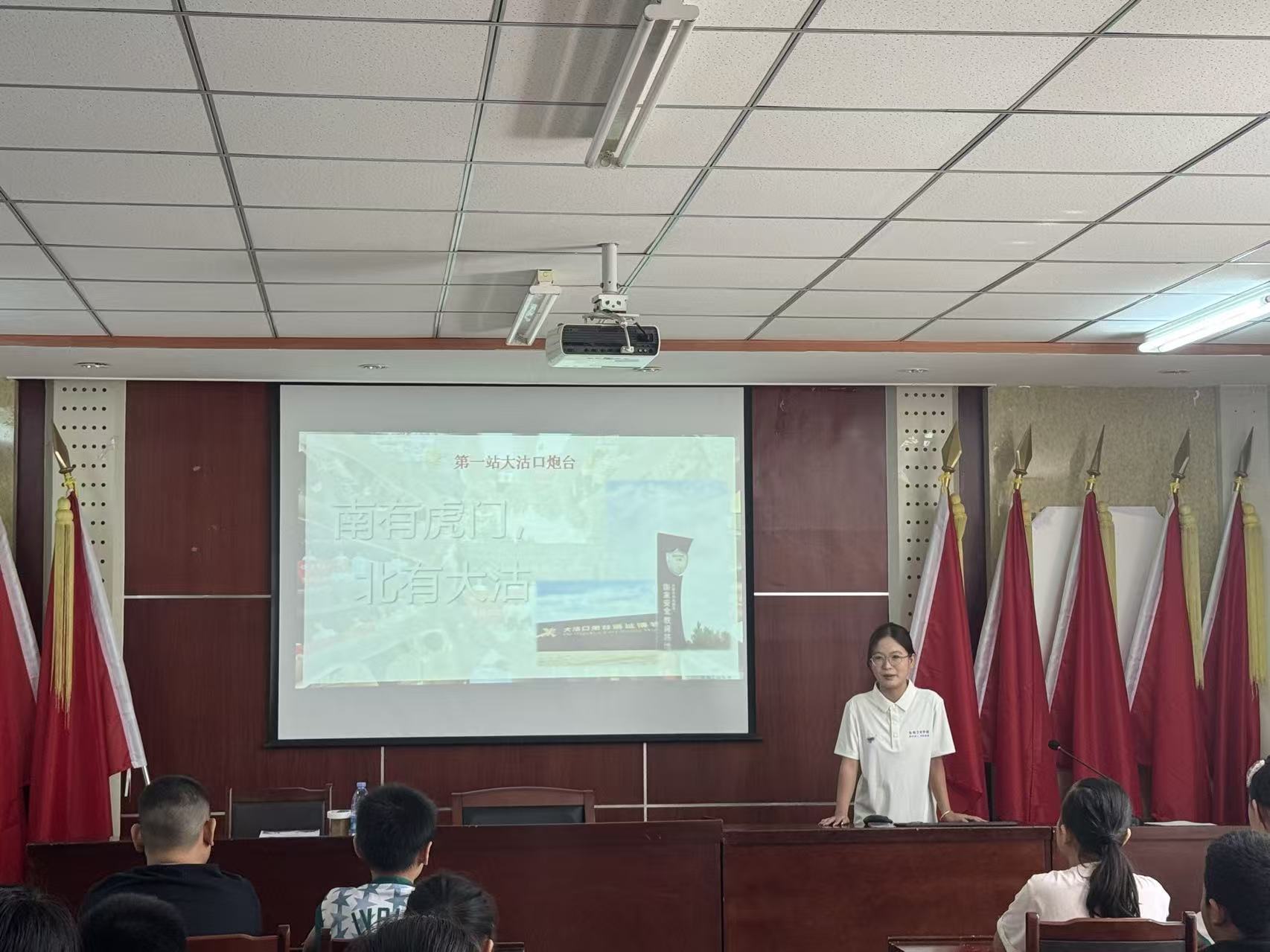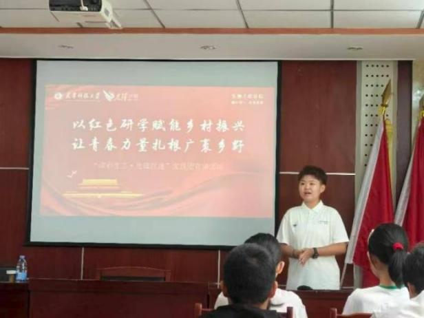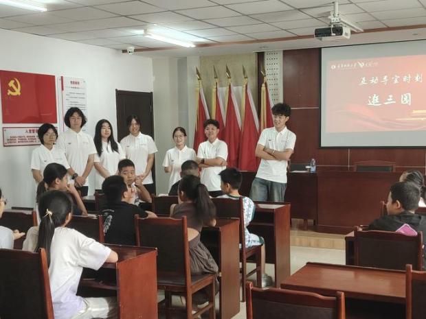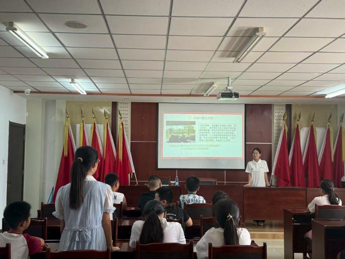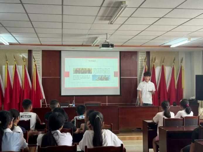 实践团以“红色研学赋能乡村振兴,青春力量扎根广袤乡野”为主题主线,整合周恩来邓颖超纪念馆、大沽炮台、平津战役纪念馆等实地研学成果,构建涵盖历史叙事、场景还原、互动体验的立体化教育体系,针对青少年认知特点设计教学内容:成员张若涵以大沽炮台历史为切入点,通过历史图片与文献资料串联起近代民族抗争的壮阔史诗;李家易借助影视资料还原平津战役的烽火岁月,重点讲述英雄群体的感人事迹;杨竞泽围绕周恩来、邓颖超生平事迹,展现革命先辈的崇高精神风范。教学过程中注重双向互动,实践团成员通过问答引导、案例解析等方式,帮助青少年理解历史脉络,实现从知识传递到情感共鸣的转化。