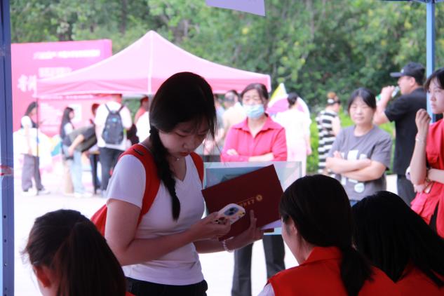 迎新现场,驻足迎新现场的每一处详细询问、了解迎新工作的进展并与新生们亲切交谈,言语之间满怀对大家的关怀和期待。