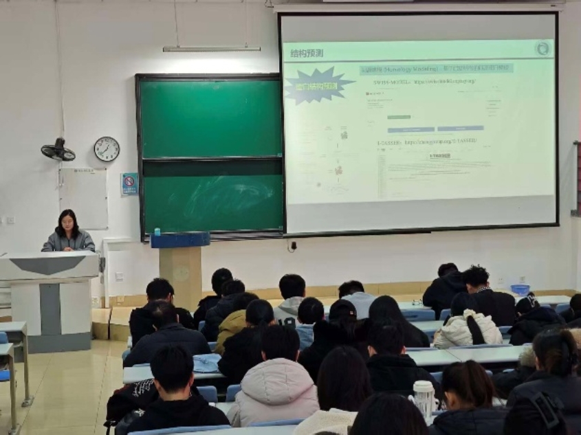科学道德与学风建设宣讲活动中,吴新明首先以《分子动力学模拟辅助酶的理性设计》为题分享。她从酶设计的研究背景切入,结合自身科研实践,详解介绍了分子动力学模拟在蛋白结构预测、分子对接中的应用,还现场演示了PDB数据库、SWISS-MODEL等工具的使用方法。她结合实例强调,科研中需严守数据真实性、规范工具引用,“每一步模拟结果都要经得起复现”。研一新生们认真记录,纷纷表示从师姐的分享中既学到了科研方法,也明确了学术诚信的底线。