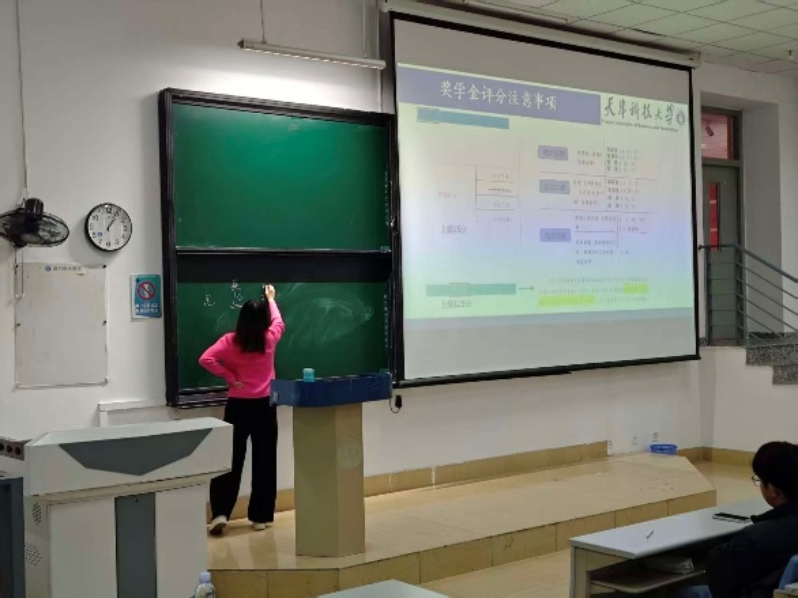 随后,王宇以《提升软实力和竞争力的要点》为主题展开分享。她先聚焦科研“软实力”,从沟通表达、团队协作、时间管理等维度,结合实验数据汇报、课题组讨论等日常场景,解析其对推进科研项目的关键作用,并给出“主动参与学术交流”“制定分阶段任务清单”等可落地的提升方法。后围绕硬实力的核心构成,包括文献检索与分析、实验设计与操作、论文撰写与投稿等科研核心技能,结合自身经验分享了高效文献阅读技巧、实验数据记录规范等实用内容,同时补充了奖学金评分中硬实力相关指标的注意事项,用清晰案例帮助研一新生建立系统认知。现场新生认真记录要点,纷纷表示师姐的分享兼顾“软实力”与“硬实力”的提升,为大家的学术生涯提供了正确指引。