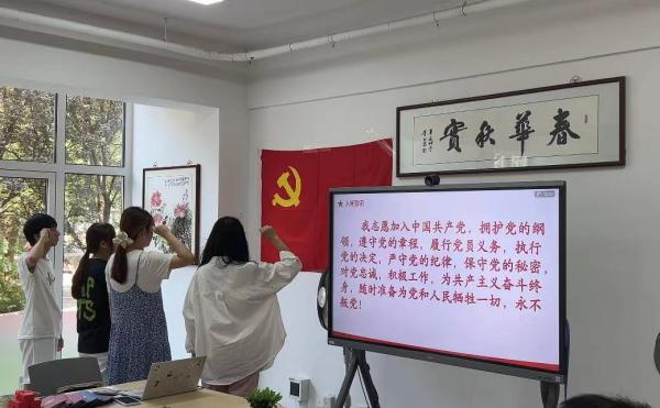 不忘初心,方得始终。在鲜红的党旗下,各位毕业生党员带领支部全体党员共同重温入党誓词,这不仅是对个人信仰的坚定表达,更是对党的忠诚和承诺的再次确认。重温入党誓词,意味着我们不忘初心,始终保持对党的忠诚和对人民的热爱。它提醒我们,作为共产党员,我们肩负着重大的历史使命和社会责任,必须时刻以高标准、严要求来约束自己,不断提高自身的思想政治素质和业务能力。