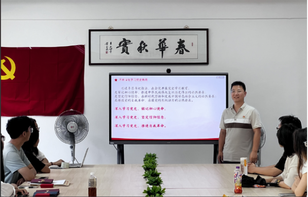 随后,支部书记赵华民同志以“重温党史守初心,恪守党纪增定力”为主题讲述专题党课。他勉励毕业生党员,要牢固树立不负人民的家国情怀,将个人理想融入国家发展、民族大义中,要坚定理想信念,牢记初心使命,把遵规守纪刻印在心,以青春之我、奋斗之我,奋力书写为中国式现代化挺膺担当的青春篇章!