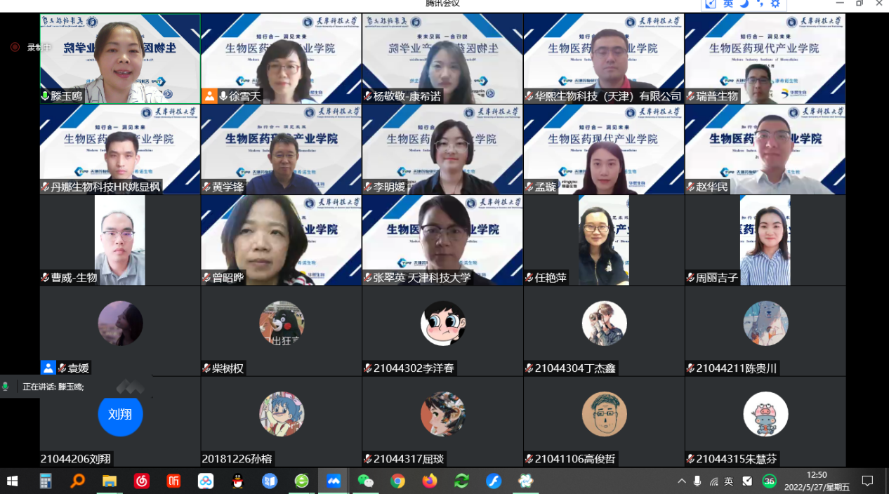 面向2020级学生开展招生宣传并启动遴选工作,本次招生宣传得到了五家共建单位的大力支持,康希诺生物股份公司杨敬敬经理、天津瑞普生物技术股份有限公司徐宏超经理、华熙生物科技(天津)有限公司李明经理、天津药物研究院有限公司闫秀云经理和丹娜(天津)生物科技股份有限公司姚显枫经理参会并做企业介绍;小九直播足球