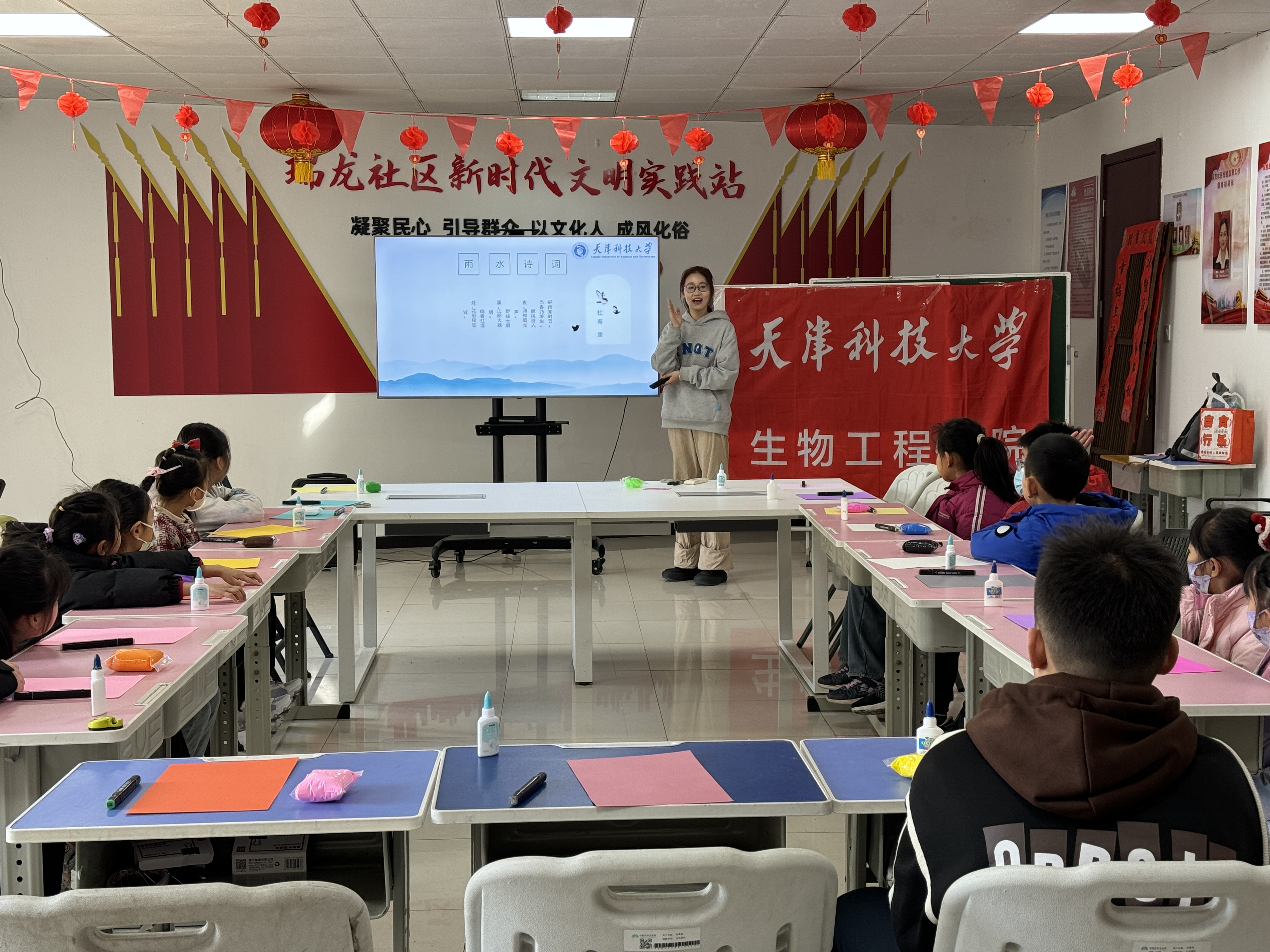 生物与医药研究生第三党支部联合中新友好图书馆、瑞龙社区举办了一场别开生面的“雨水节气与生物知识”主题宣讲活动,活动通过趣味科普和创意实践,让孩子们在感受传统文化魅力的同时,探索节气与自然生命的联系。