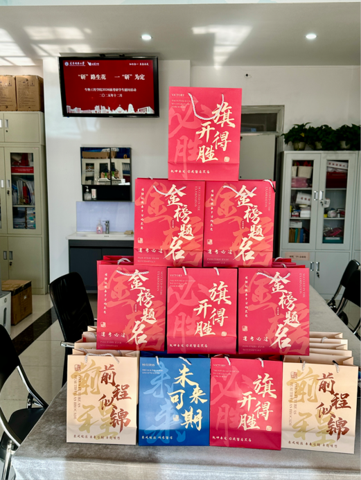 领导与老师们亲手将一份份精心准备的“考研加油包”递到同学们手中。“考研加油包”内装有水果、书签、文件袋、明信片等实用物品,橙子寓意“心想事成”,愿同学们在考场挥洒自如。书签上的寄语,承载着“金榜题名”的祝福。这些小小的礼物,是小九直播足球