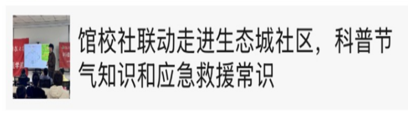 众多师生依托专业学科知识,将大学“实验室”搬入社区“小课堂”,积极服务社会,助力青少年科学素养提升。系列活动被人民日报、学习强国、天津日报、津云、书香天津、北方网、搜狐、网易新闻、津滨海、齐鲁晚报、潇湘晨报等近二十个中央和地方媒体平台宣传报道近百次,被点击阅读量近六万次。推动区域家校社协同育人“教联体”建设,搭建大中小思政一体化建设“新模式”。