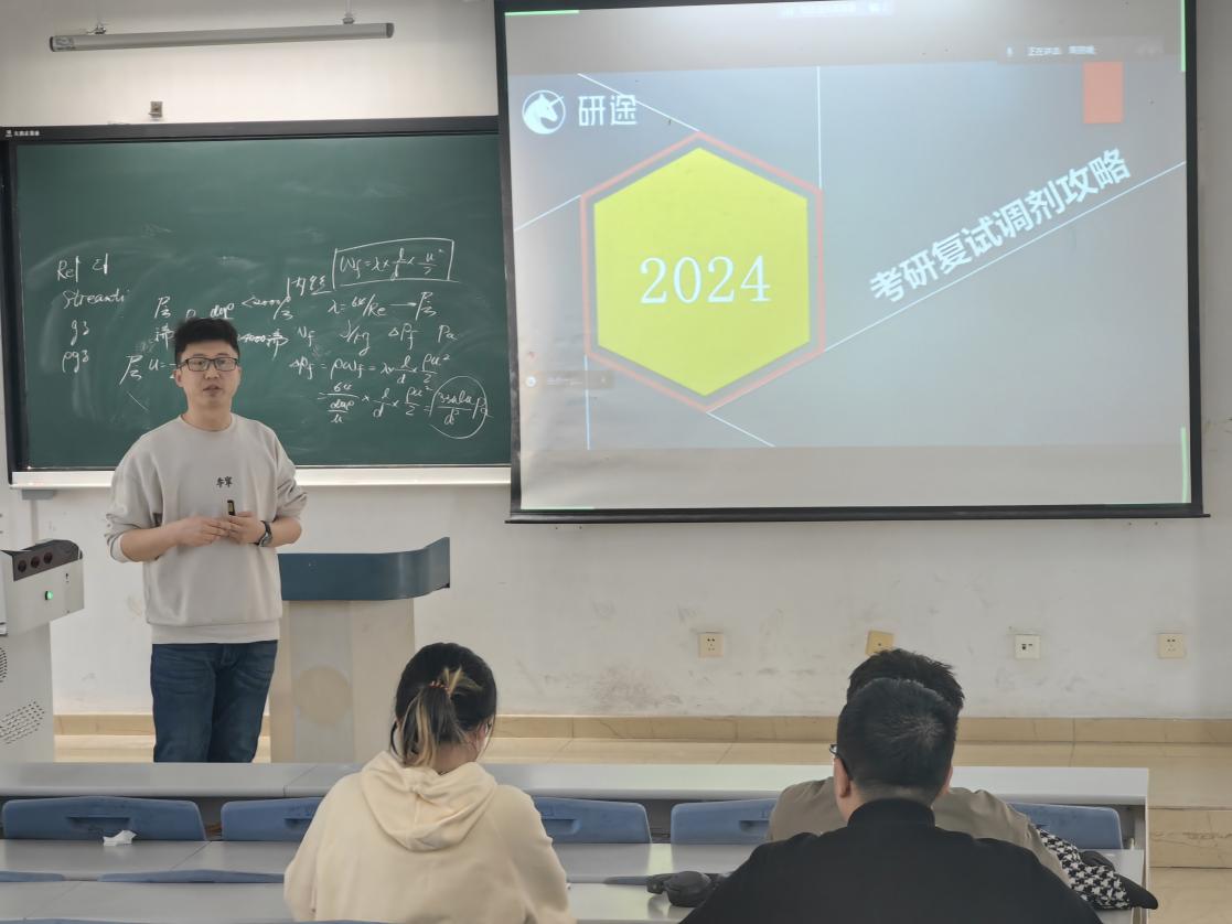 随后,研途教育的张老师为同学们带来了精彩的授课,内容涵盖了复试面试的形式、综合评分的类别、复试调剂的原则三个方面展开,让同学们受益匪浅。针对考生最关心的面试环节,张老师详细介绍了面试的形式、考核内容、评分标准。张老师指出,面试的核心在于展现出自己的学习实力和科研潜力,建议考生在面试前充分了解自己所报专业的背景和发展趋势,注重提高自己的语言表达和逻辑思维能力。