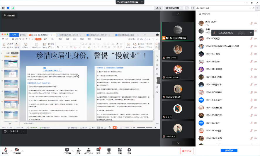 本科毕业年级辅导员申莉主讲,2022届全体毕业生参加。