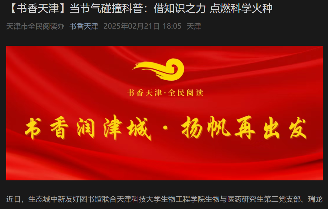 科普品牌入选2025年天津市全域科普品牌宣传活动名单。