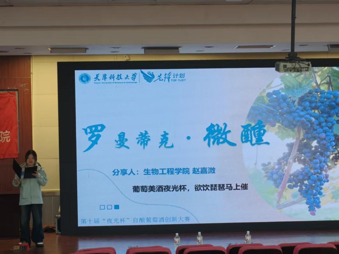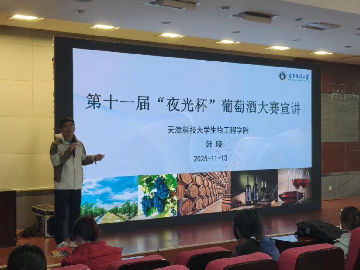 葡萄酒的醇香,早已跨越千年时光,与东方文明交织出独特的韵味。11月13日,天津科技大学第十一届“夜光杯”自酿葡萄酒创新大赛在滨海校区中院图书馆第二报告厅正式拉开帷幕。
