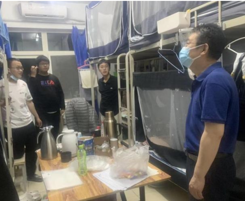 院领导一行走进学生宿舍,与同学们进行了亲切的交流。一是详细询问同学们近期的思想动态,鼓励大家保持积极健康心态,平稳有序进行校园内的学习、科研和生活;二是询问学生对学校疫情防控政策的意见和建议,为同学们认真讲解学校的疫情防控政策,并要求同学们严格遵守学校疫情防控的相关规定;三是关心关注同学们的身心健康,深入了解同学们的心理健康情况,鼓励同学们劳逸结合。
