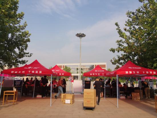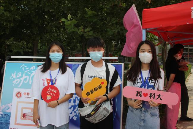 迎风飘扬的彩旗,远远地夹道欢迎前来报到的新生。从正门口的“天科青年 未来可期”、“喜迎二十大 筑梦向未来”