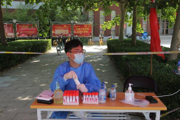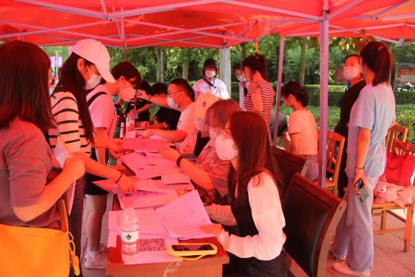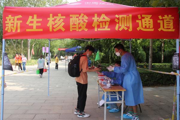 安排志愿者们在新生核酸检测点位进行轮班值守,指导下载软件、录入信息、分发试管,重复成百上千次的动作,为新生们入校第一检提供便利。