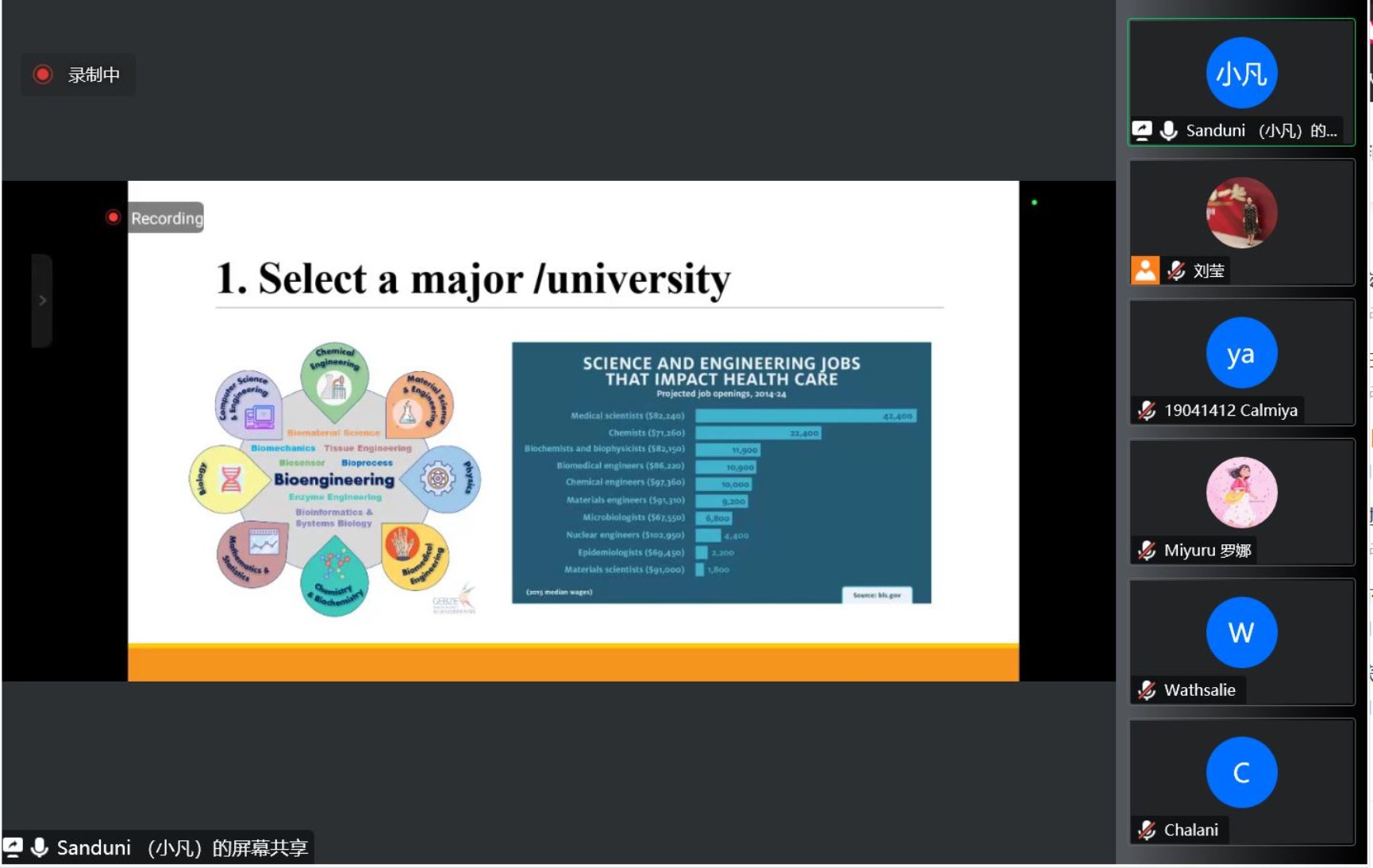 斯里兰卡本科生DE ALWIS SOORIYA ARACHCHIGE SANDUNI SAMUDIKA (中文名:小凡)分享“如何在中国顶尖大学和研究所申请硕士项目”。报告以在线形式开展,小九直播足球
