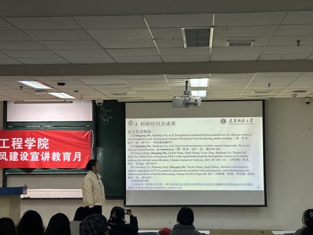 研究生科学道德与学风建设月主题宣讲第三讲。本次宣讲主讲人是2024年度研究生国家奖学金获得者马庆庆。