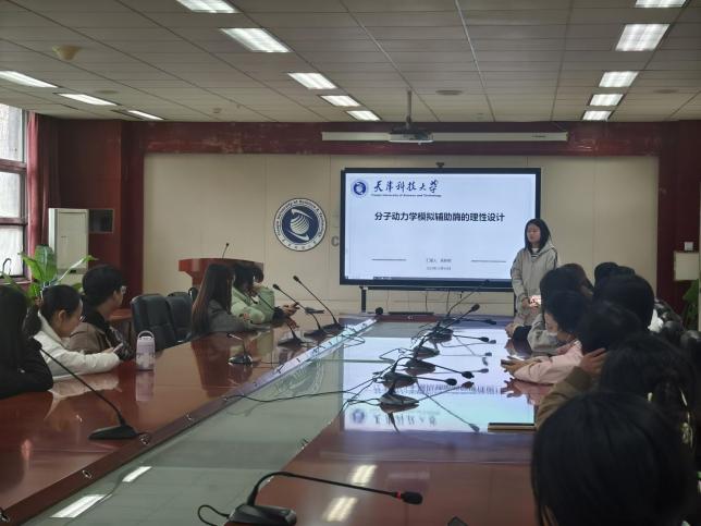 国家奖学金获得者吴新明结合分子模拟辅助酶的理性设计的科研经历与同学们进行了分享。吴新明通过强调分子模拟技术在现代生物化学研究中的重要地位对本次宣讲进行展开,她通过多个层次将计算机技术和生物技术融合的发展前景和未来的科研安排与参会的师生做了详细的沟通交流,与参会的同学展开良好的互动,促进了多学科、多内容的交流。同时,她还鼓励同学们保持好奇心,勇于尝试新技术,同时也要注重理论知识的学习,打下坚实的学术基础。
