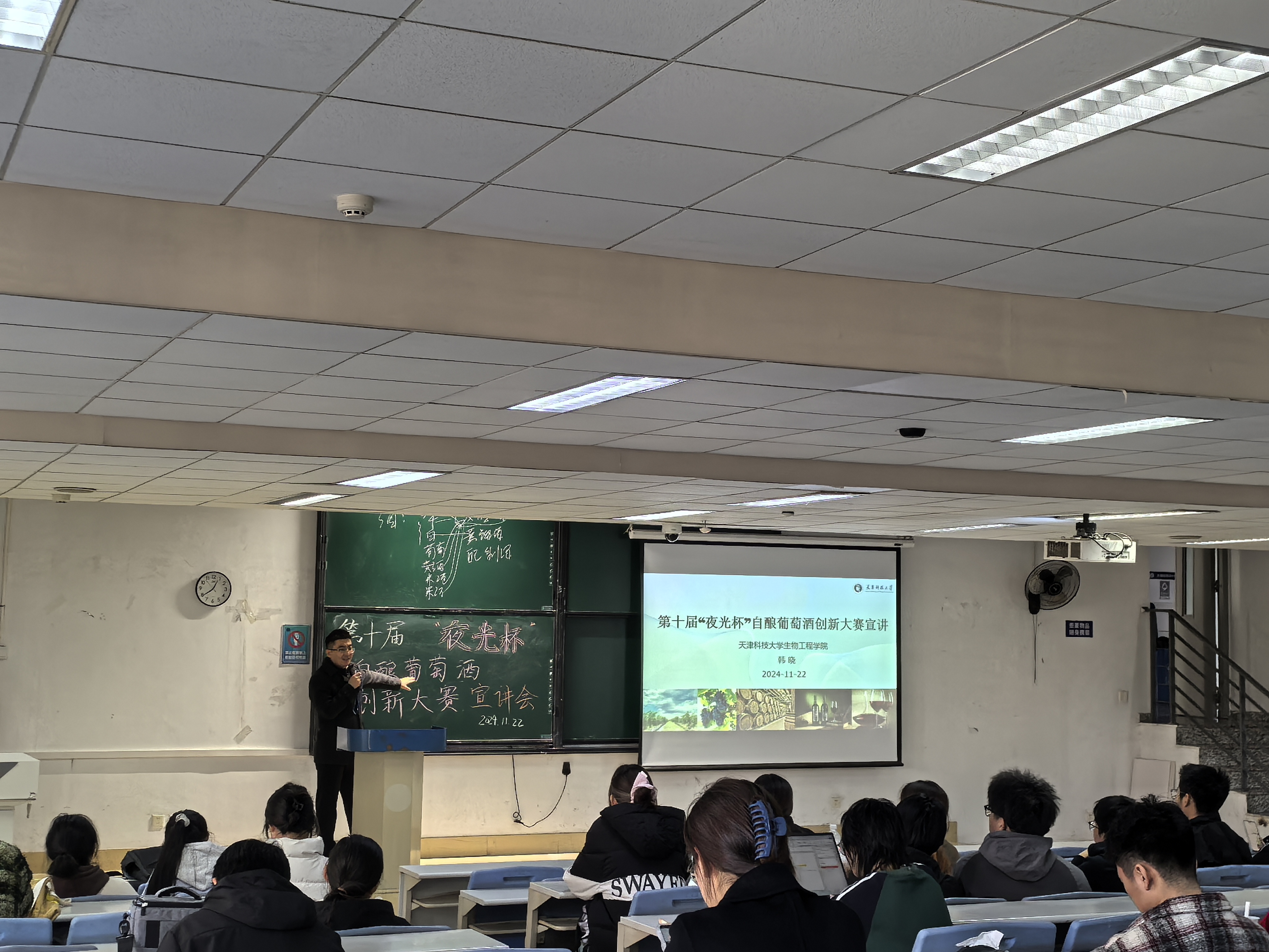 葡萄美酒夜光杯,欲饮琵琶马上催,在中华传统文化的长河中,葡萄酒宛如一颗璀璨的明珠闪耀着独特的光辉,成为文化传承不可或缺的一部分。11月22日,天津科技大学第十届“夜光杯”自酿葡萄酒创新大赛在图书馆6阶梯正式拉开帷幕。