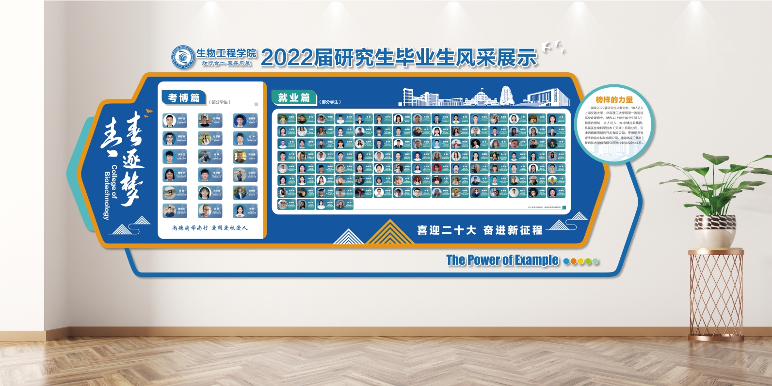 一楼大厅墙体打造毕业生风采展示文化墙,扎实推进学风建设,帮助在校学生明确学习目标和方向,进一步激励学生养成优良学风。