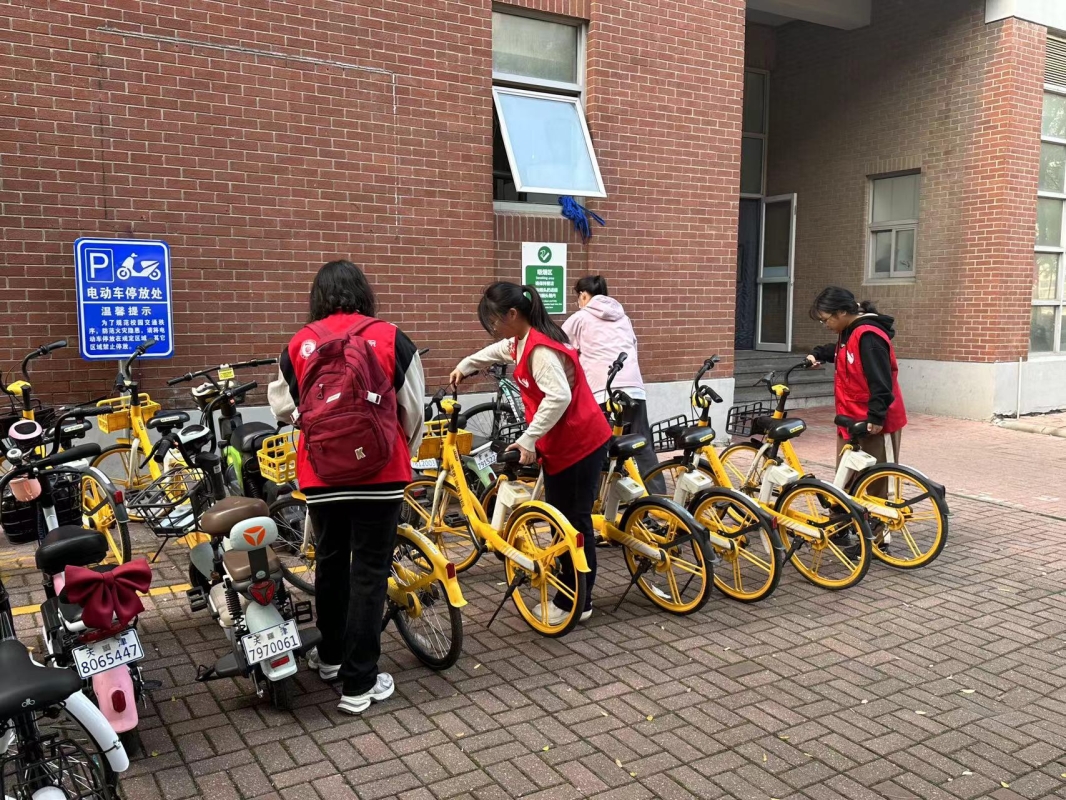 “规范校园非机动车停放”志愿活动。小九直播足球