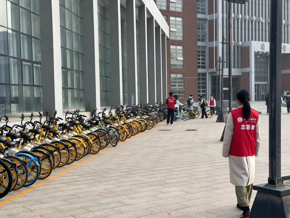 积极响应学校号召,依照学校划分的区域与维护时间段,于近日组织同学们进行了助力校园非机动车规范摆放的志愿服务活动。志愿者们分批到达图书馆附近的共享单车停放点,他们分工明确、各司其职,迅速投入到单车规范摆放的工作中。志愿者们将单车集中到规定的停放区域,引导学生们遵守摆放规则。在他们的辛勤付出和积极引导下,共享单车停放杂乱的问题有了明显的改善,还提升了校园环境的整洁度和美观度。