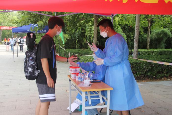 的第一份温暖;报到点前,志愿者们收取台账、核验核酸、身份验证,核验科大通缴费记录、办理绿色通道;寝室楼下,支部党员积极分子扛起行李、进宿舍开展防盗防诈翻篇安全教育宣讲;新生核酸检测点位,志愿者们录入信息、分发试管,协助完成新生入校核酸。各岗位志愿者在把好校园疫情防控关的基础上,帮助新生们顺利入校,为新生们提供了最有力的陪伴和帮助。